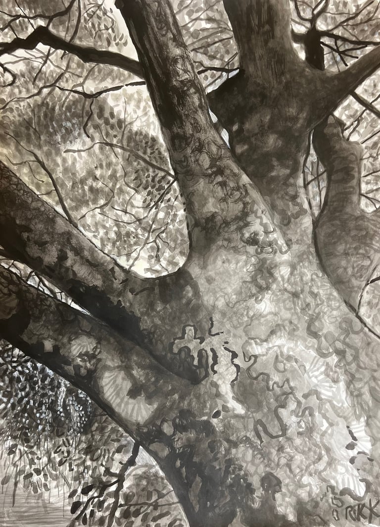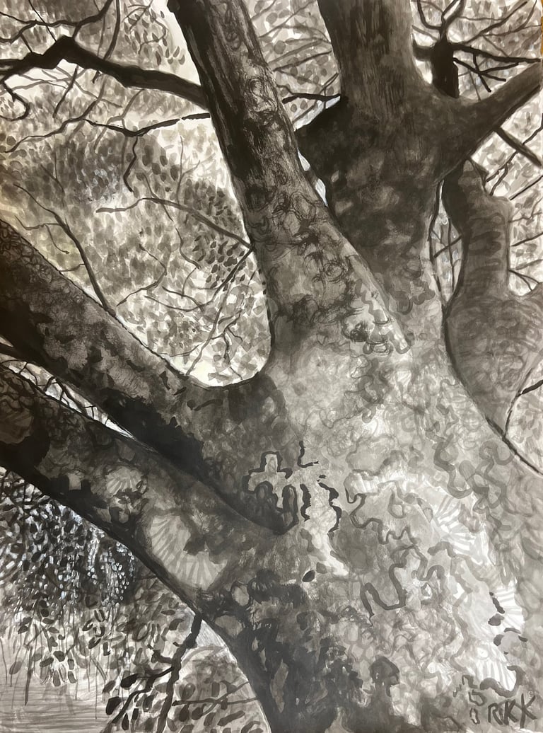 Swan Song with Lymes 2023 Oil on Khadi Handmade Paper 20 x 27"h