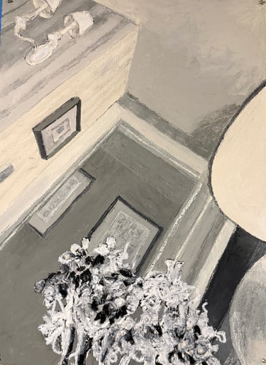 Living Room, 2025, Oil on Arches paper, 22 x 30"h