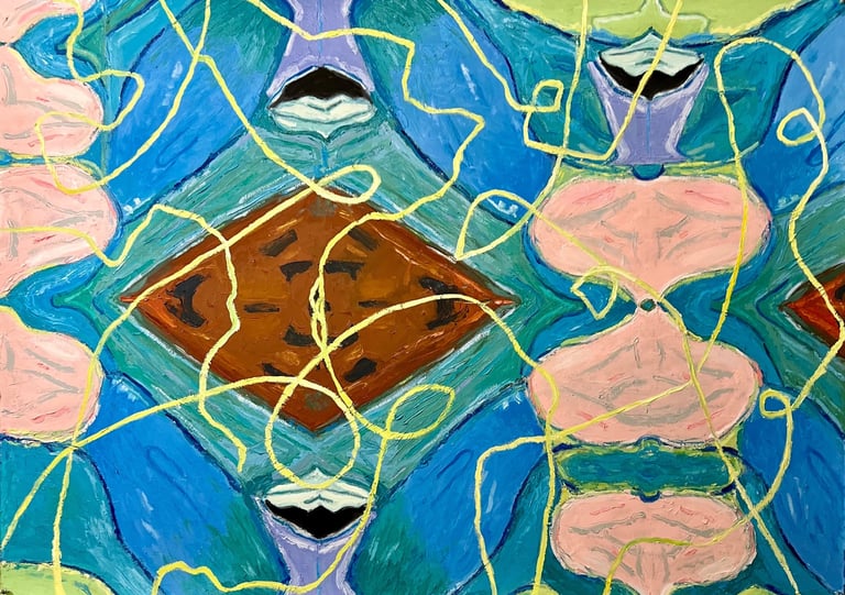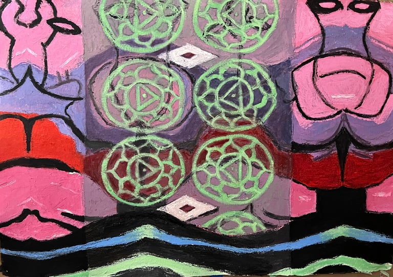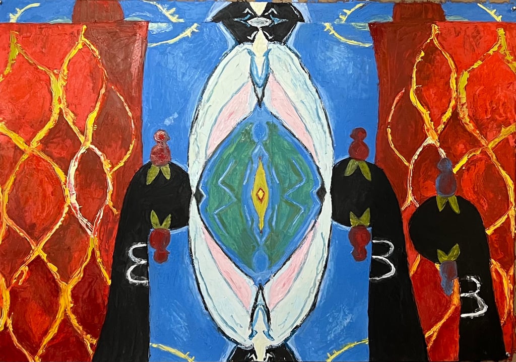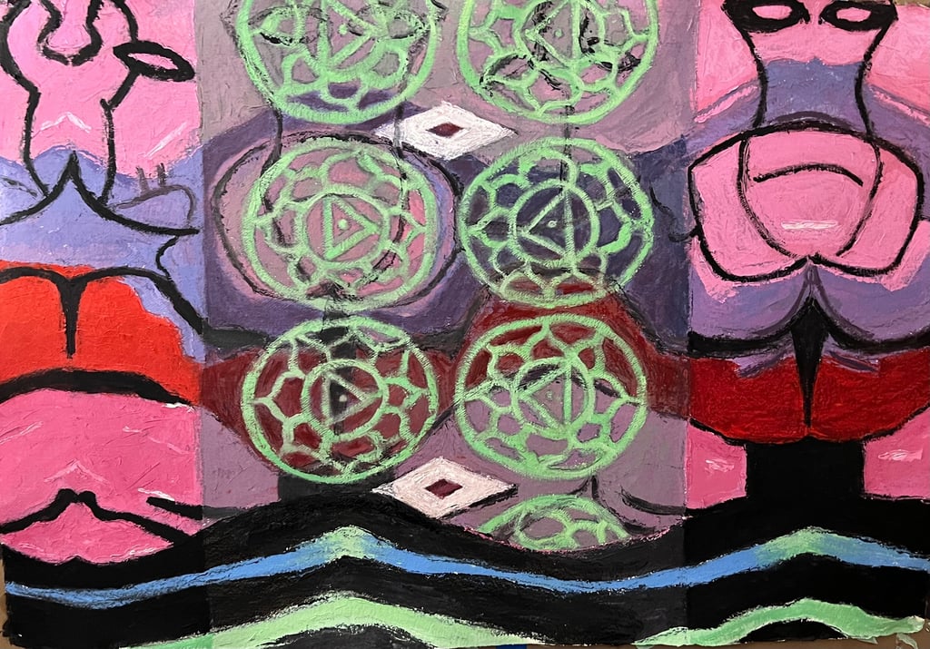 Alien Dharma Bums 2023 Oil on Paper 42 x 30"h