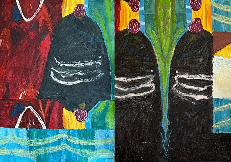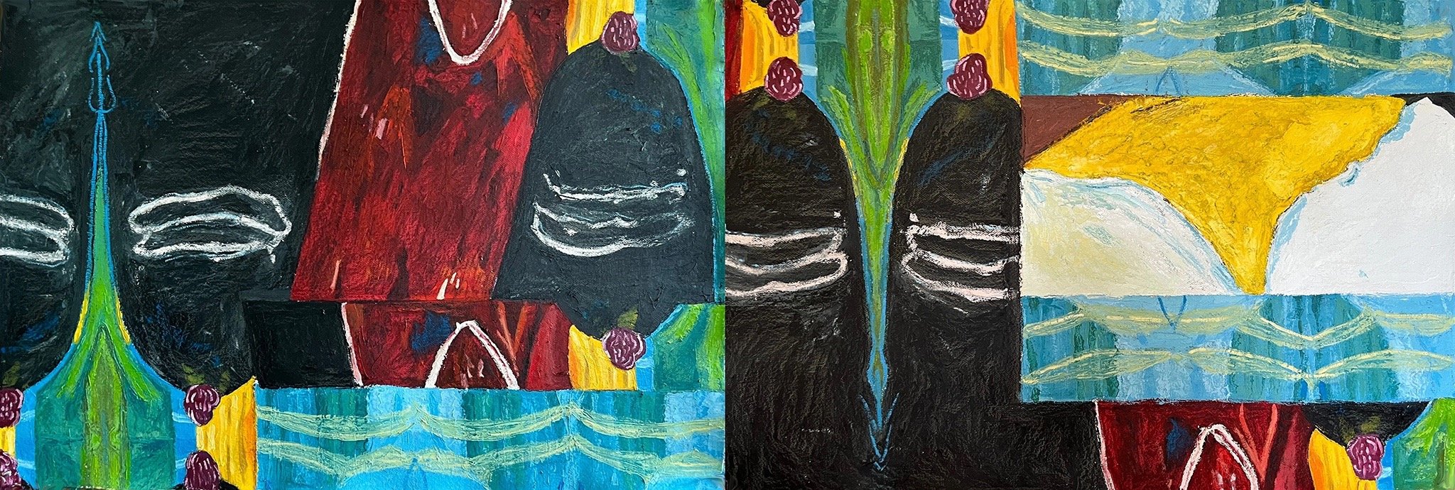 Sambhava (diptych) 2024 Oil on Khadi paper 78 x 27.5”h