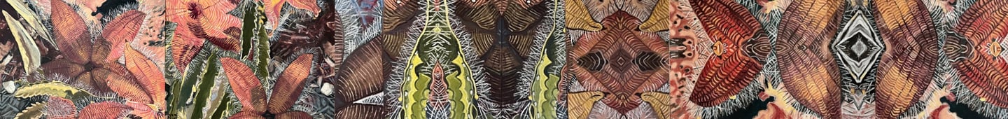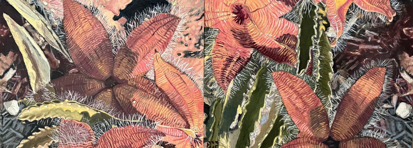 The Retrograde Inversion of the Stapelia Gigantea (diptych) 2024 Oil on Arches paper 60 x 22"h