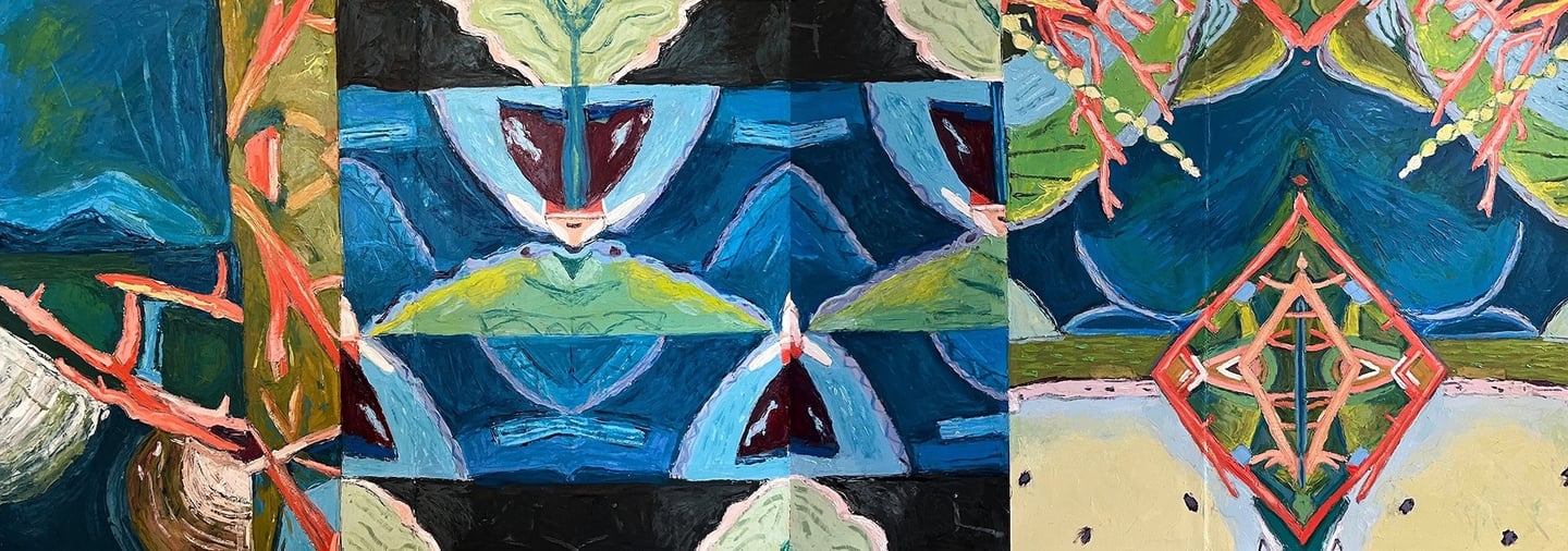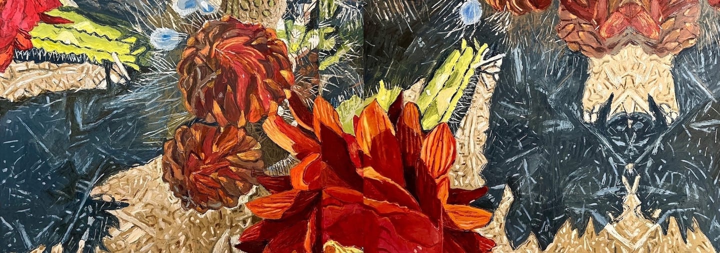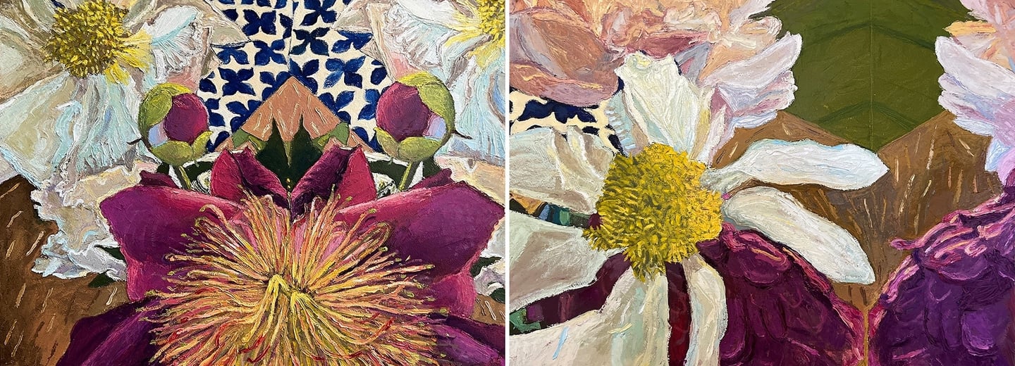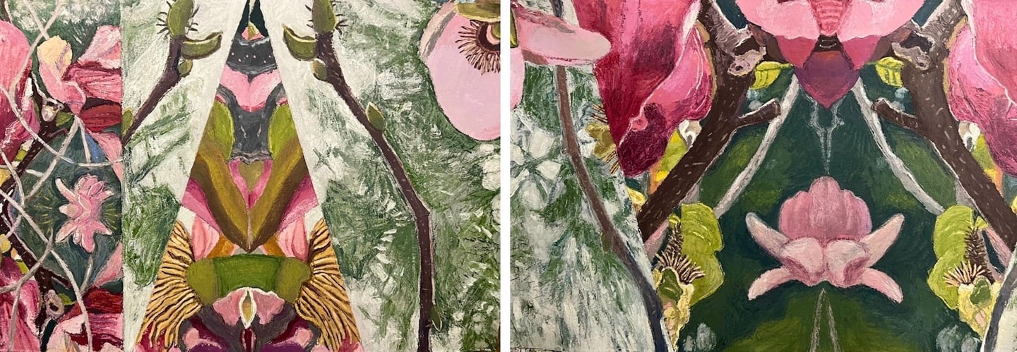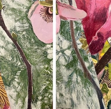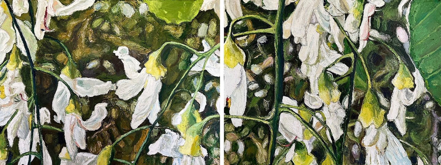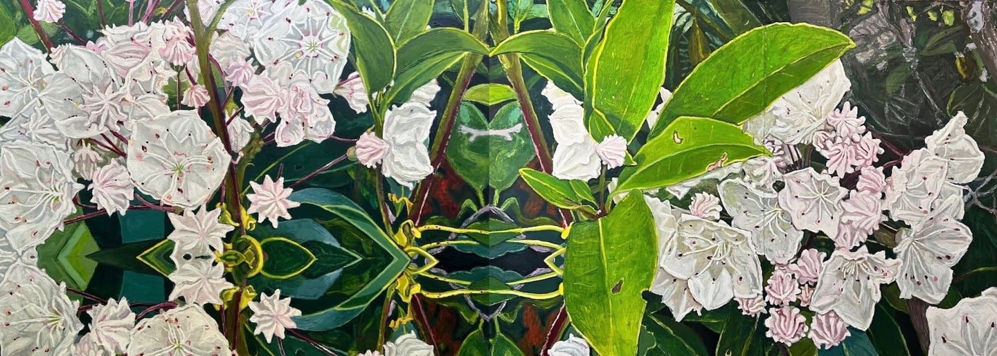 The Gorgeous Agony of Mountain Laurels (diptych) 2024 Oil on Arches paper 84 x 30"h