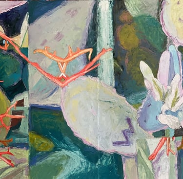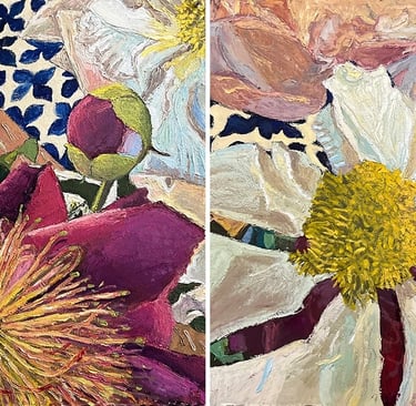 The First and Second Layers of Happiness (diptych) 2024 Oil on Arches paper 60 x 22"h