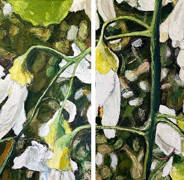 The Seen and the Unseen (diptych) 2024 Oil on Arches paper 60 x 22” h