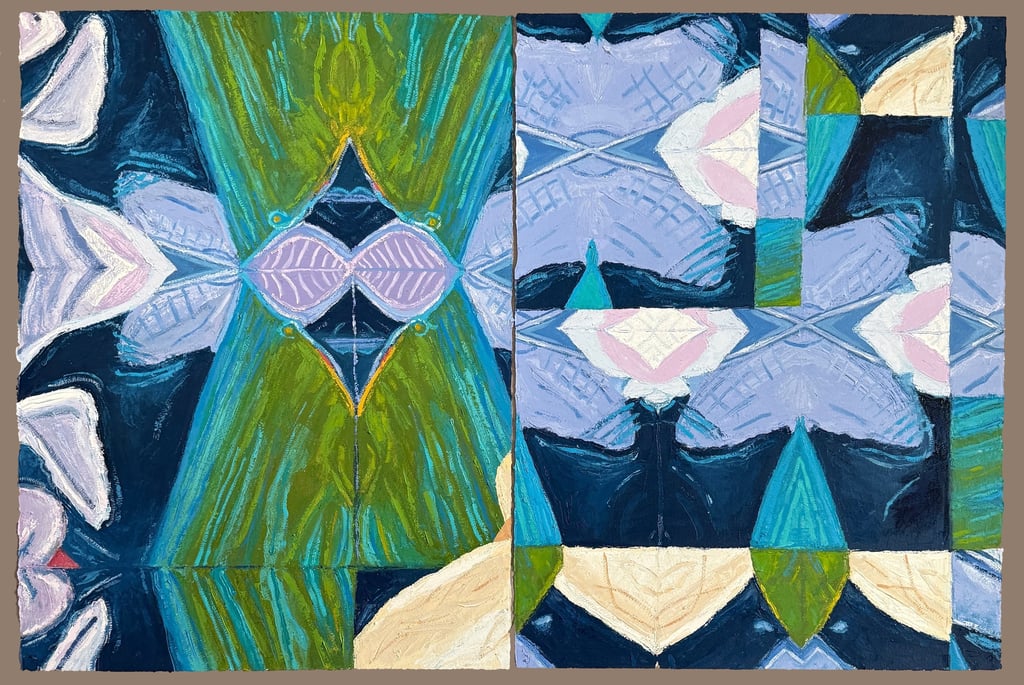 El Silencio de Azul (diptypch) 2025 Oil on Khadi paper 55 x 40”h