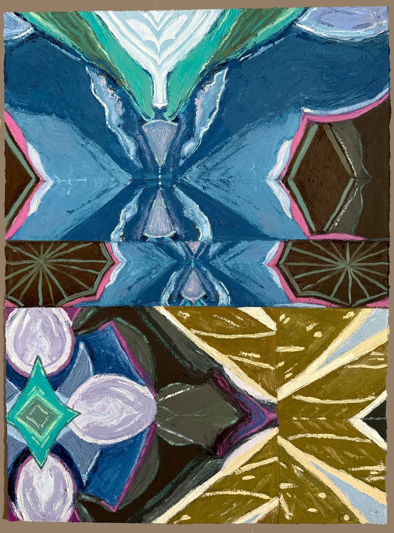 Open the Double Doors of the Horizon (triptych) 2025 Oil on Arches paper 66 x 30”h